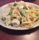 Chicken breast and broccoli simmered in a creamy Alfredo sauce served over fettuccine.
